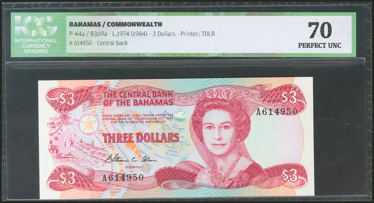 BAHAMAS. 3 Dollars. 1974. (Pick: 44a). ICG70.