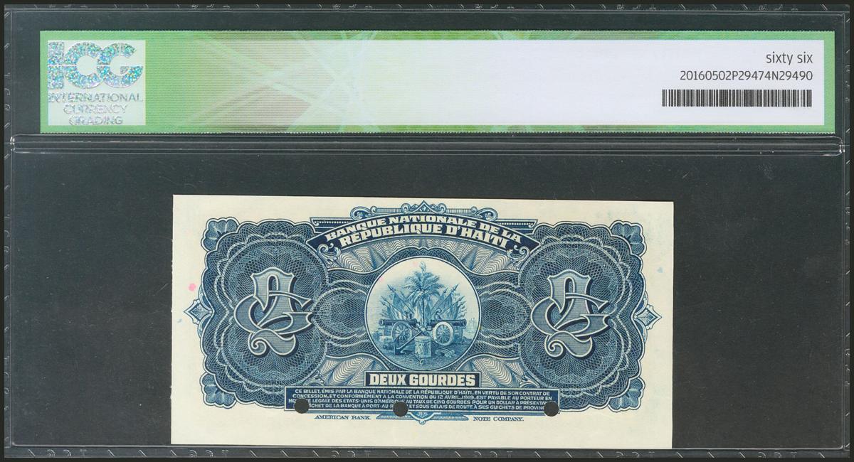 HAITI. 2 Gourdes. 1919. (Pick: 161s). ICG66.