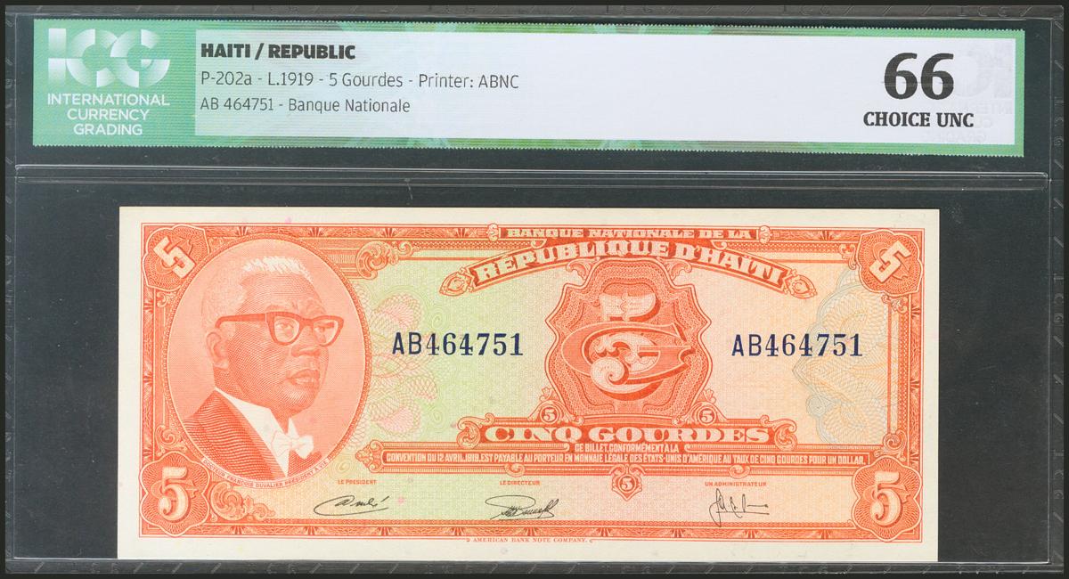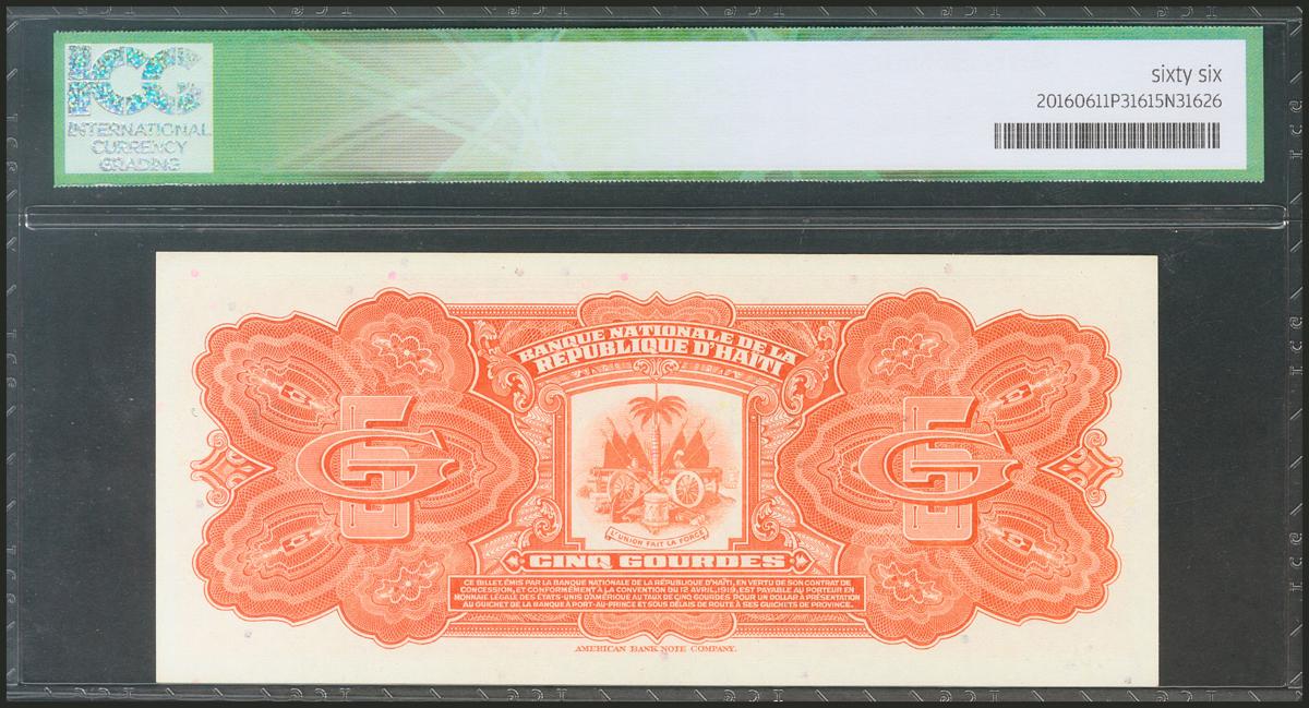 HAITI. 5 Gourdes. 1919. (Pick: 202a). ICG66.