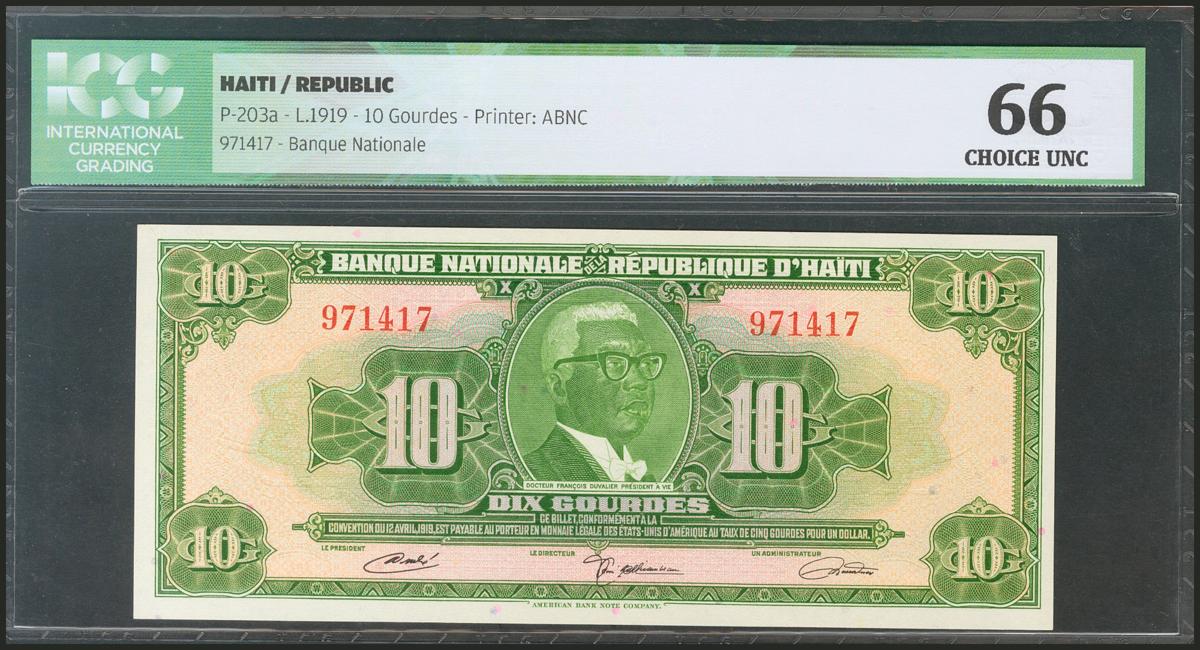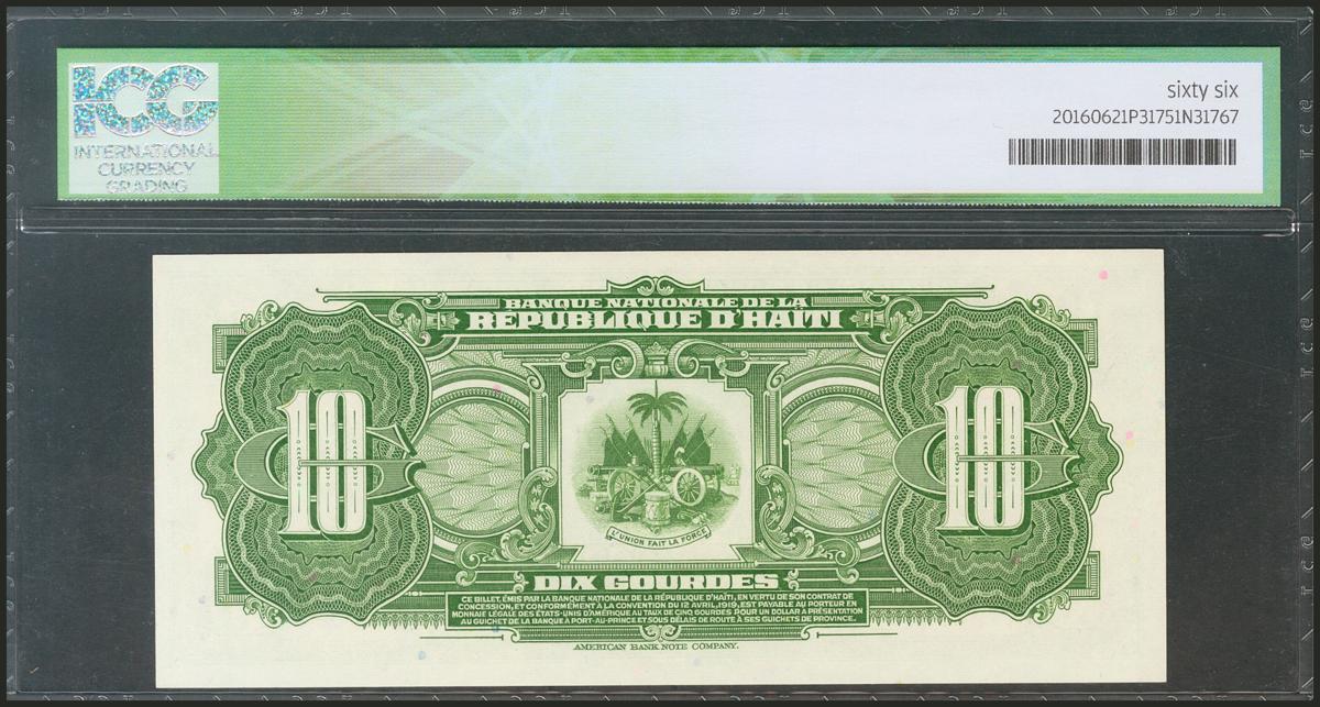 HAITI. 10 Gourdes. 1919. (Pick: 203a). ICG66.