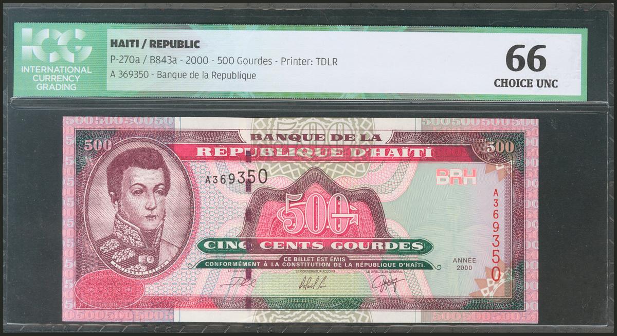 HAITI. 500 Gourdes. 2000. (Pick: 270a). ICG66.