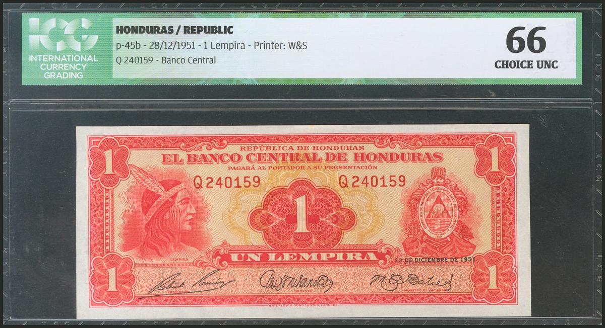 HONDURAS. 1 Lempira. 28 December 1951. (Pick: 45b). ICG66.