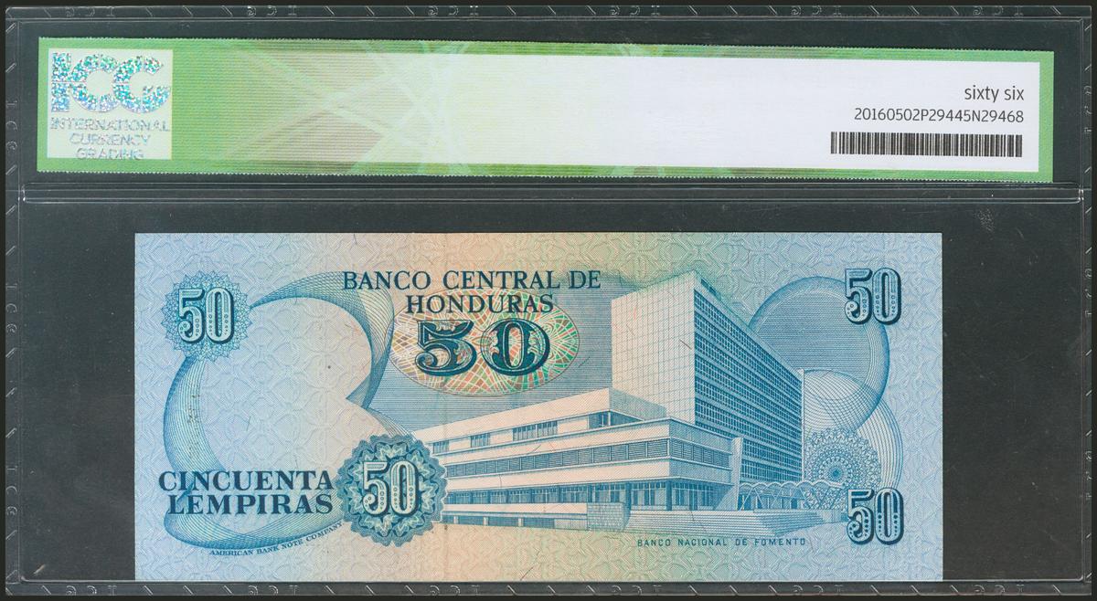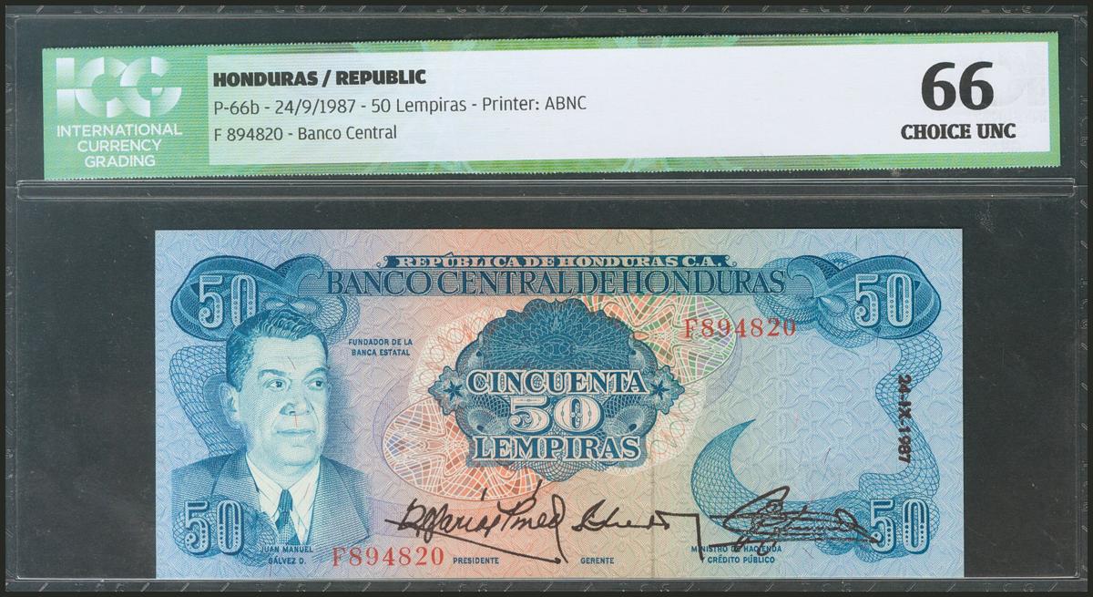 HONDURAS. 50 Lempiras. 24 September 1987. (Pick: 66b). ICG66.
