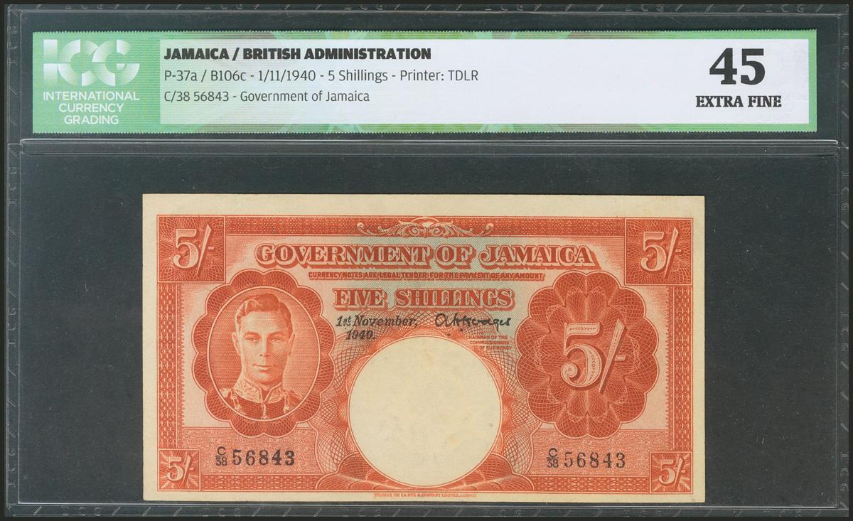 JAMAICA. 5 Shillings. 1 November 1940. (Pick: 37a). ICG45.