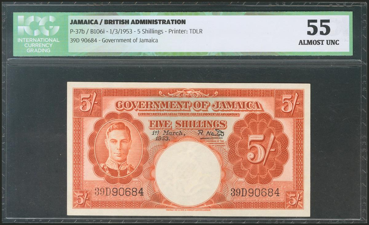 JAMAICA. 5 Shillings. 1 March 1953. (Pick: 37b). ICG55.