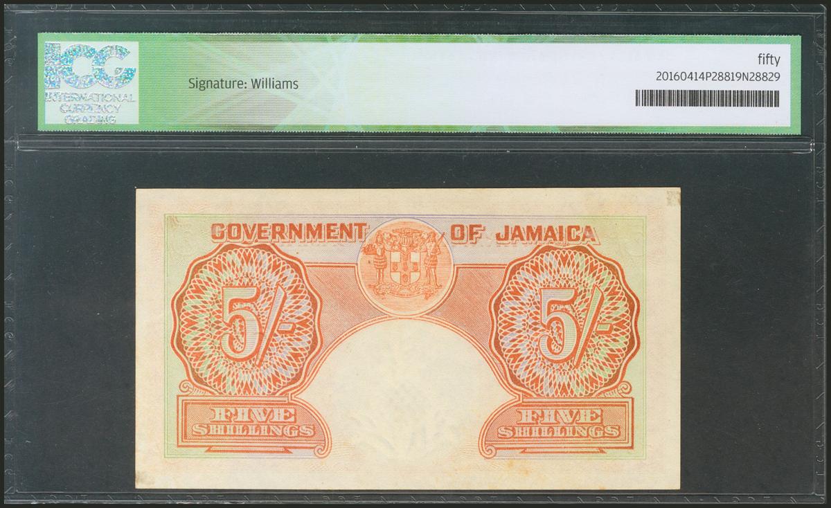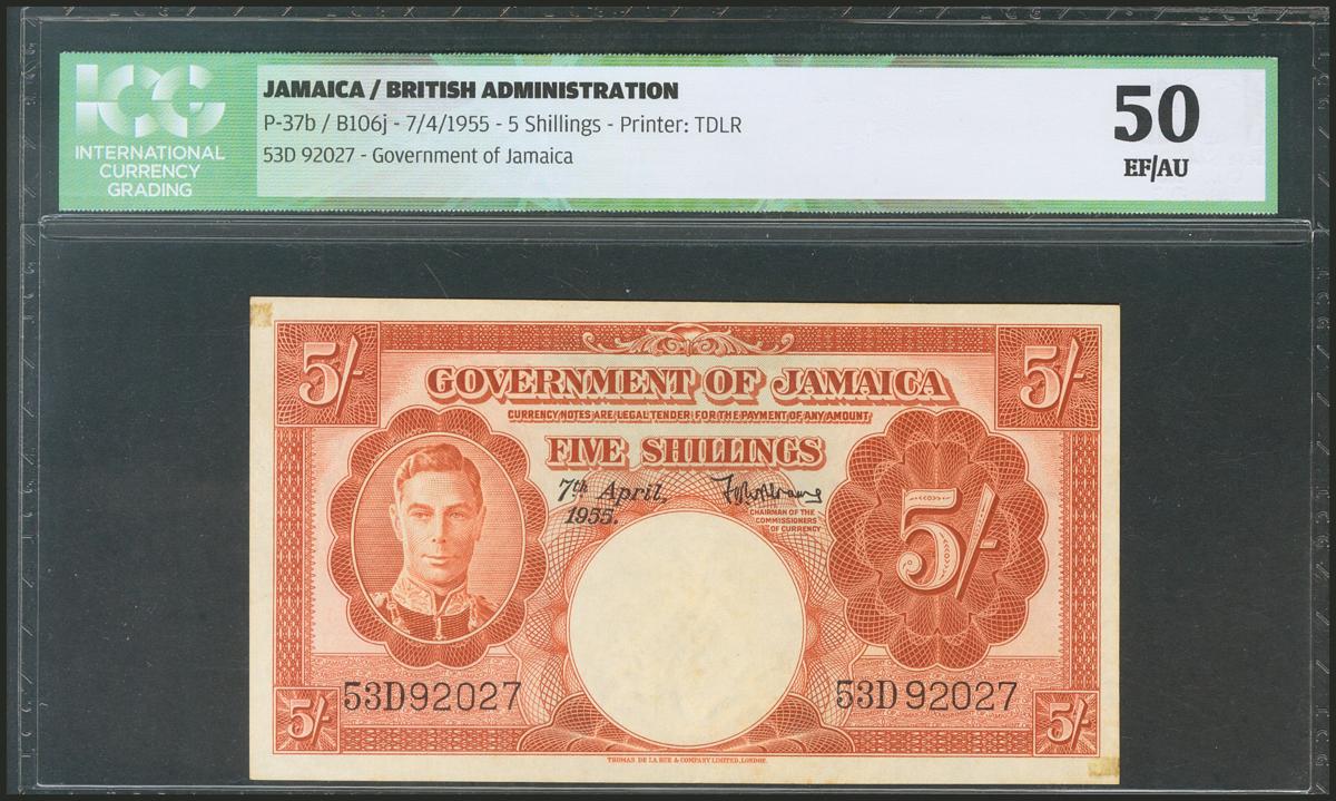 JAMAICA. 5 Shillings. 7 April 1955. (Pick: 37b). ICG50.