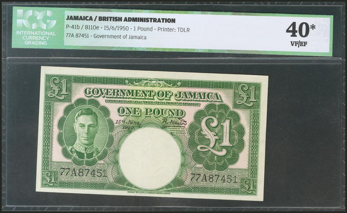 JAMAICA. 1 Pound. 15 June 1950. (Pick: 41b). ICG40* (staple holes top left).