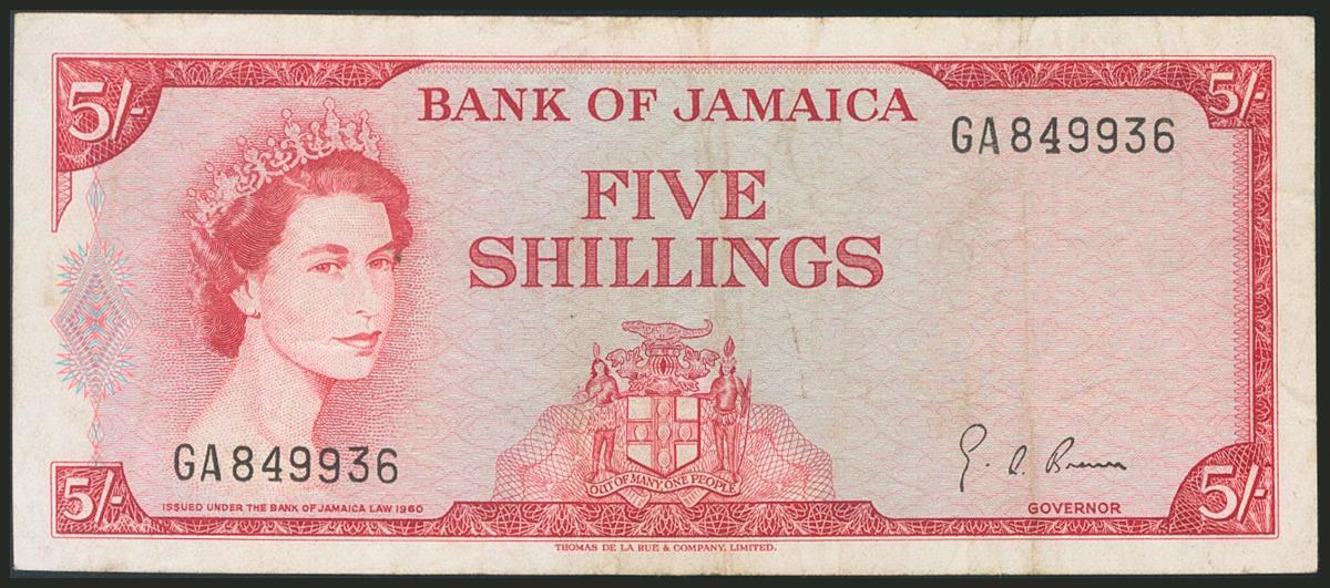 JAMAICA. 5 Shillings. 1960. (Pick: 49). Fine.