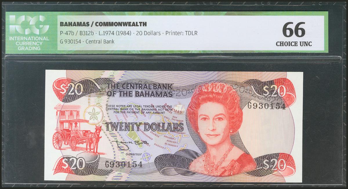 BAHAMAS. 20 Dollars. 1974. (Pick: 47b). ICG66.