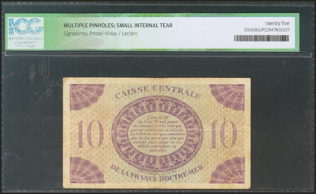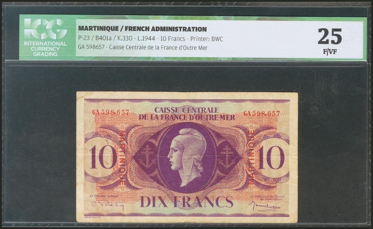 MARTINIQUE. 10 Francs. 1944. (Pick: 23). ICG25.