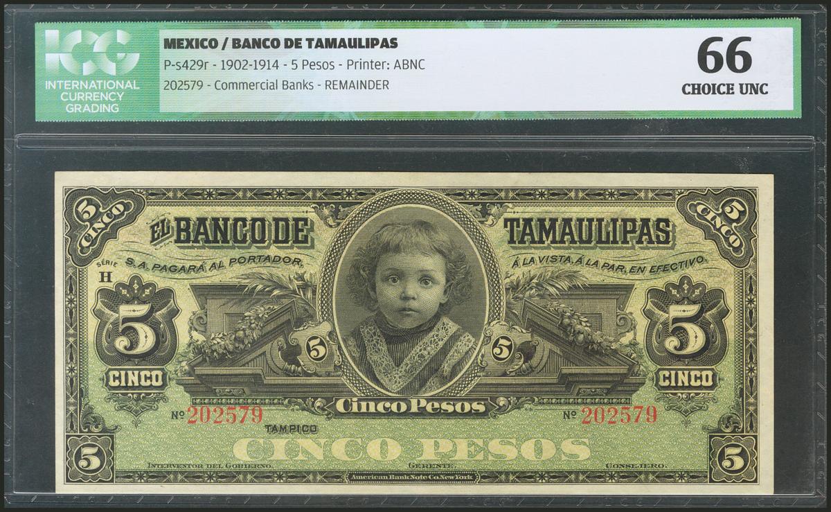 MEXICO. BANCO DE TAMAULIPAS. 5 Pesos. 1902-1914. (Pick: s429r). ICG66.