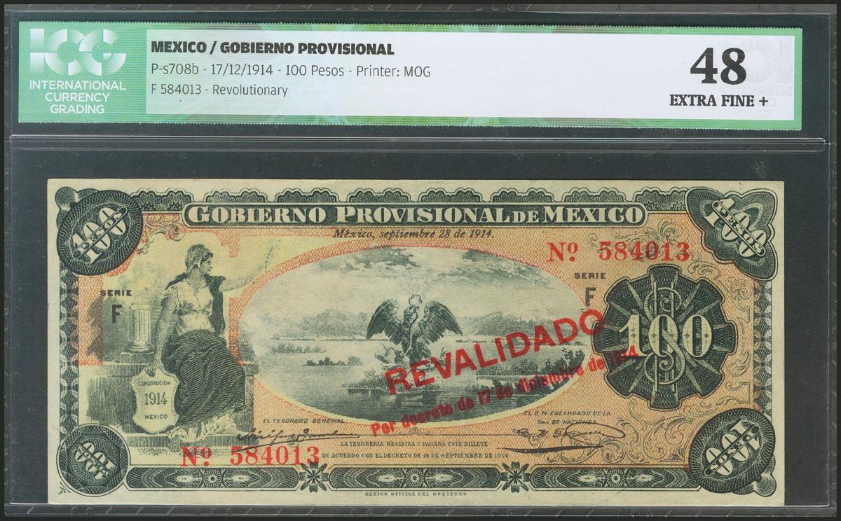 MEXICO. GOBIERNO PROVISIONAL. 100 Pesos. 17 December 1914. Revalidado. (Pick: s708b). ICG48.
