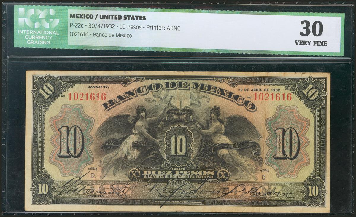 MEXICO. UNITED STATES. 10 Pesos. 30 April 1932. (Pick: 22c). ICG30.