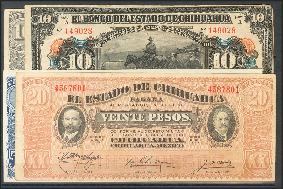 MEXICO. ESTADO DE CHIHUAHUA. Set of 10 banknotes of 1, 5 and 10 Pesos. 1914/1915. Fine/About Uncirculated.