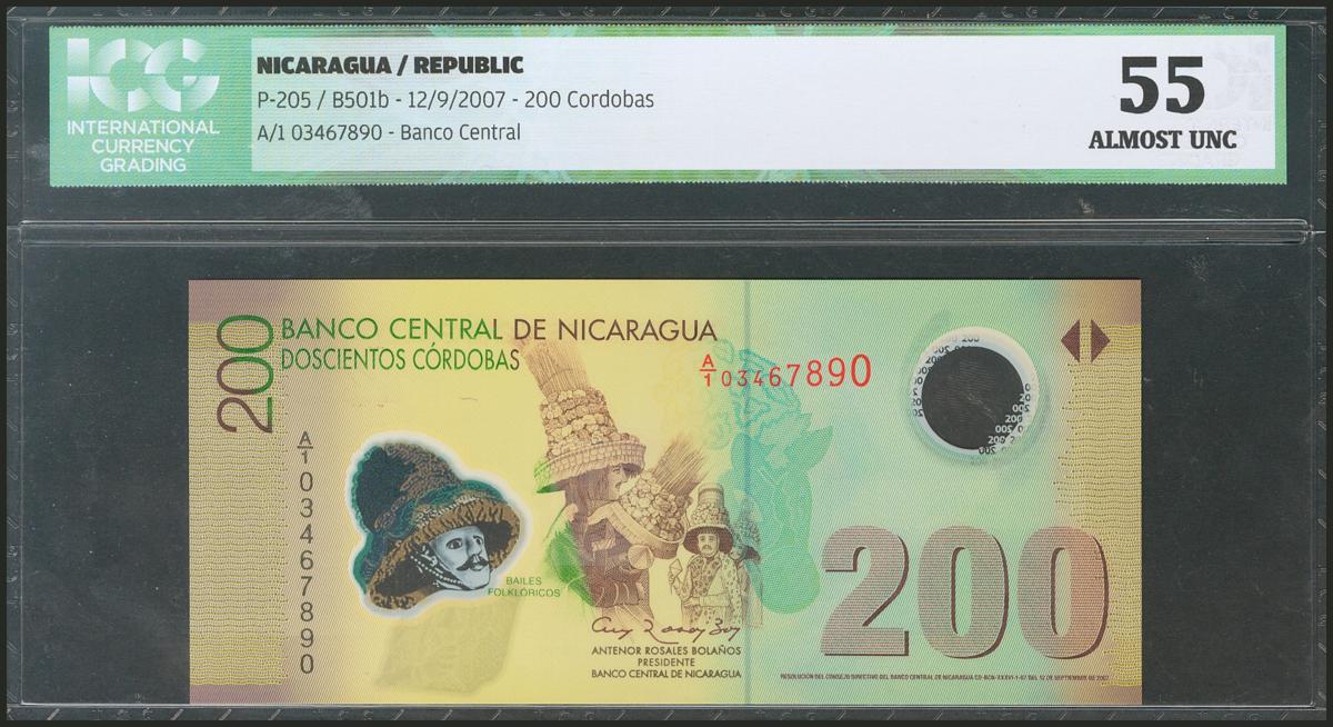 NICARAGUA. 200 Cordobas. 12 September 2007. (Pick: 205). ICG55.