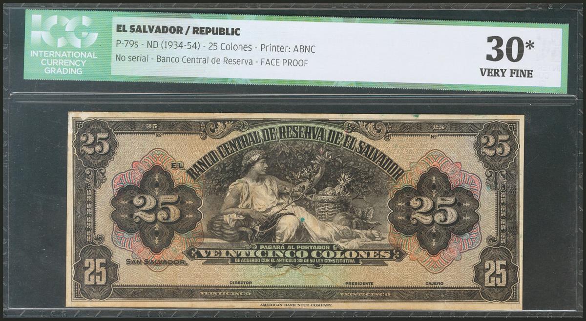 EL SALVADOR. 25 Colones. 1934-1954. (Pick: 79s). ICG30* (large glued tear, trimmed, glue marks).