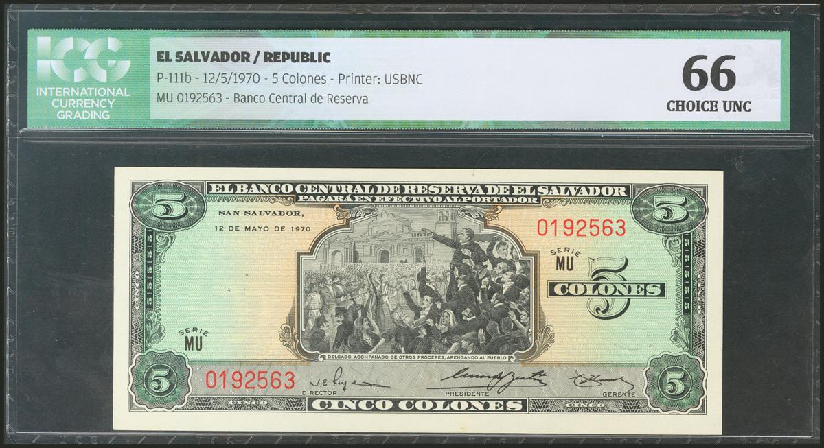 EL SALVADOR. 5 Colones. 12 May 1970. (Pick: 111b). ICG66.