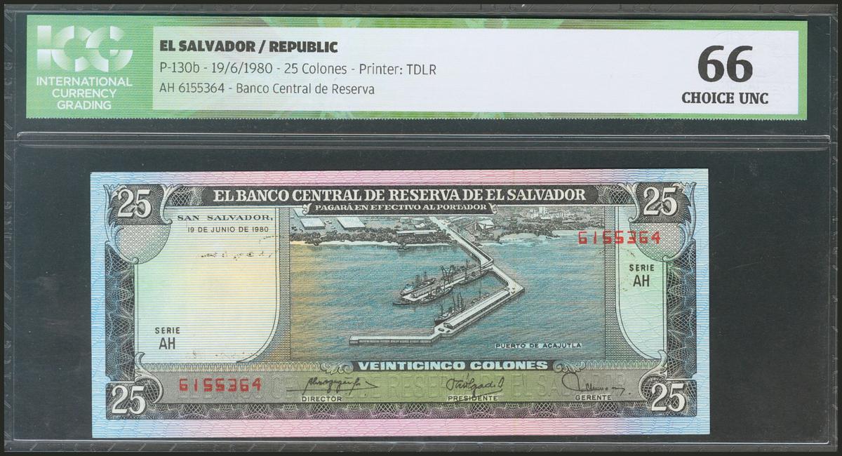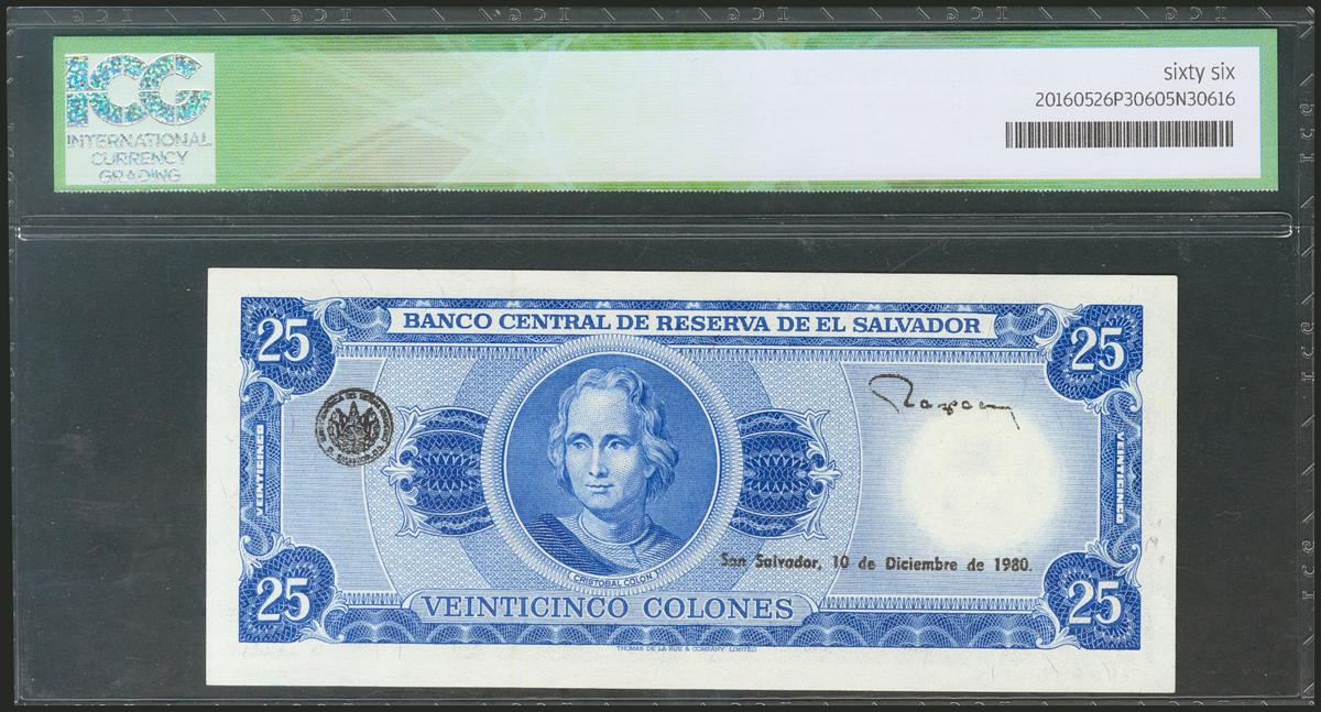 EL SALVADOR. 25 Colones. 19 June 1980. (Pick: 130b). ICG66.