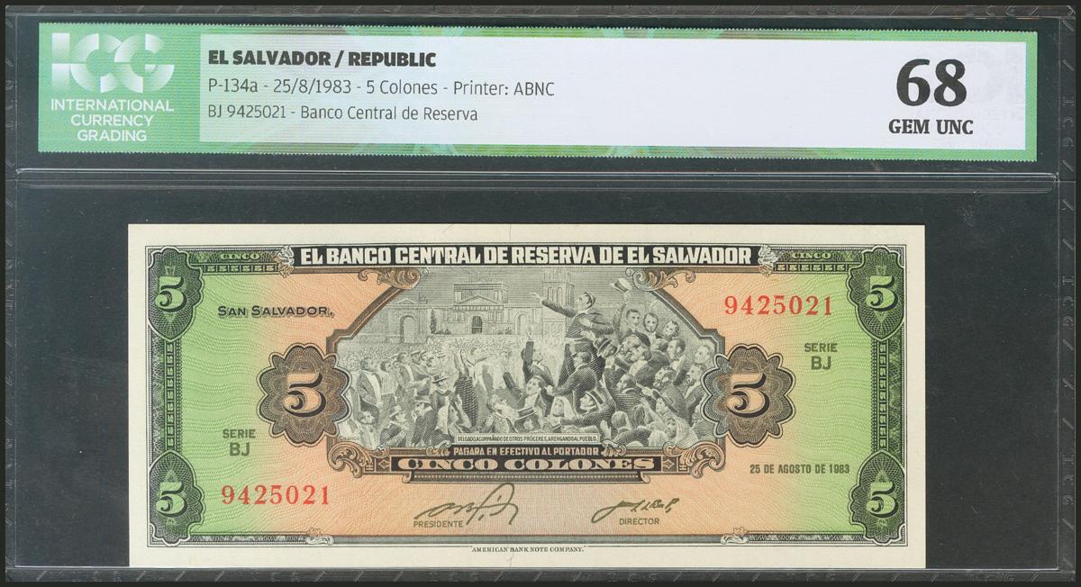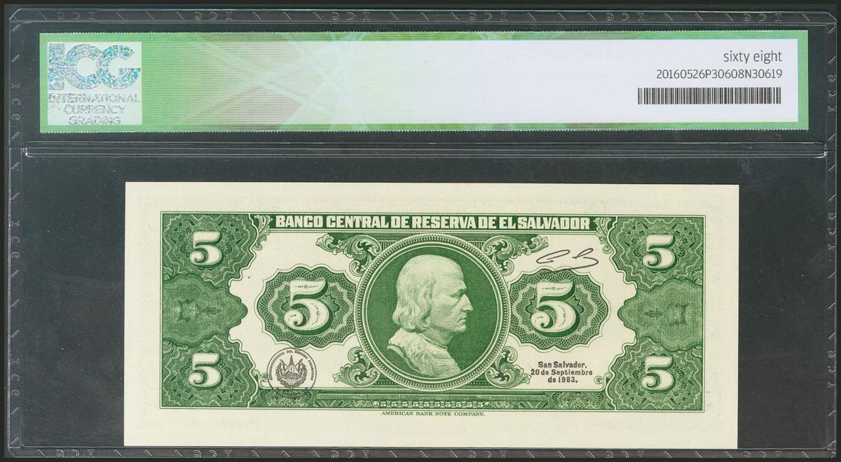 EL SALVADOR. 5 Colones. 25 August 1983. (Pick: 134a). ICG68.