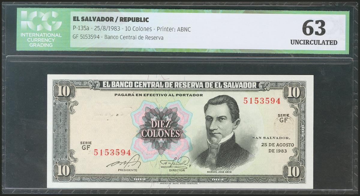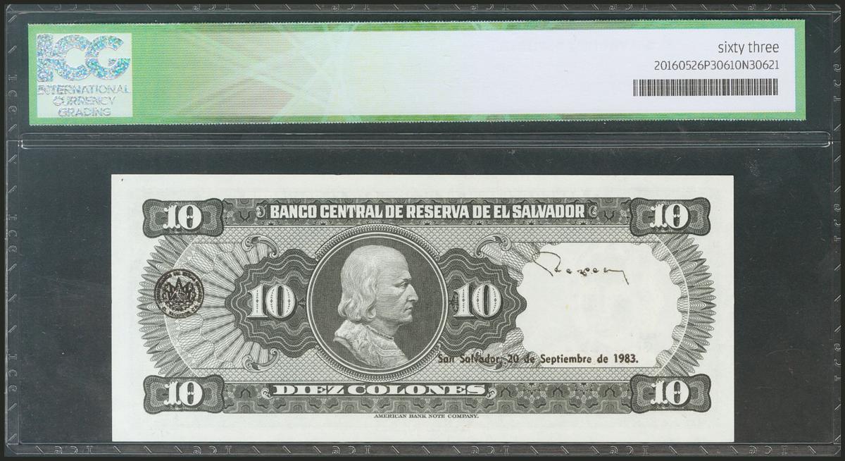 EL SALVADOR. 10 Colones. 25 August 1983. (Pick: 135a). ICG63.