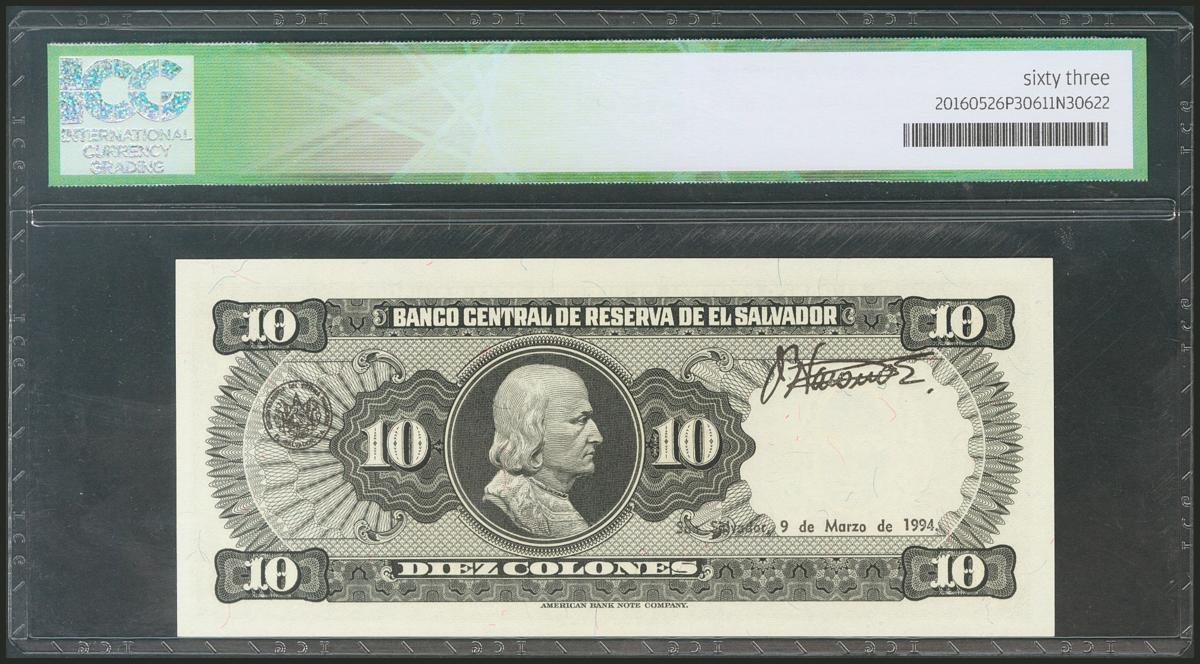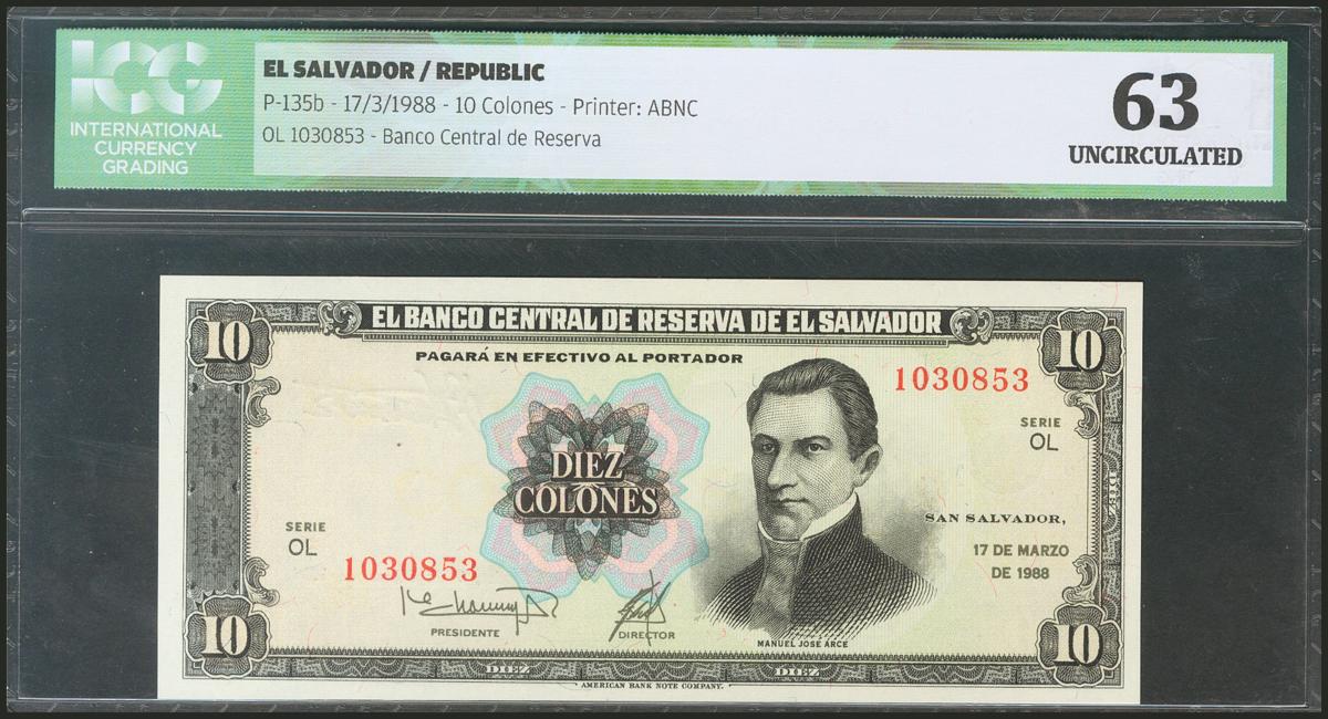EL SALVADOR. 10 Colones. 17 March 1988. (Pick: 135b). ICG63.