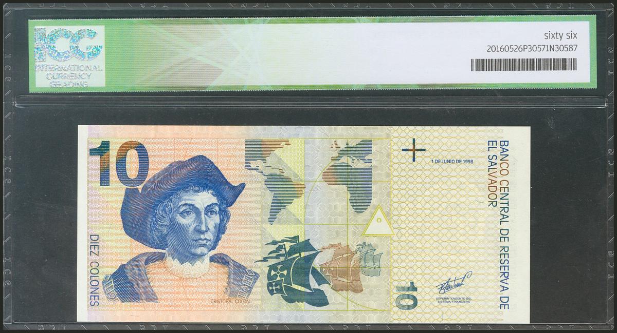 EL SALVADOR. 10 Colones. 2 March 1998. (Pick: 148a). ICG66.
