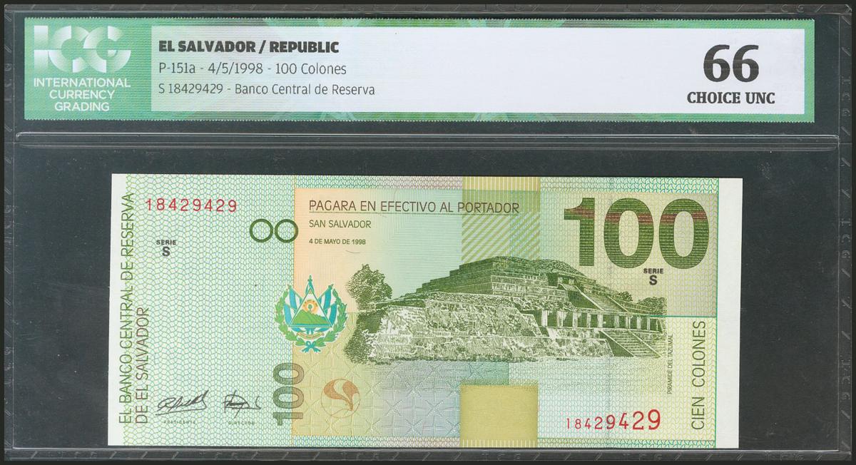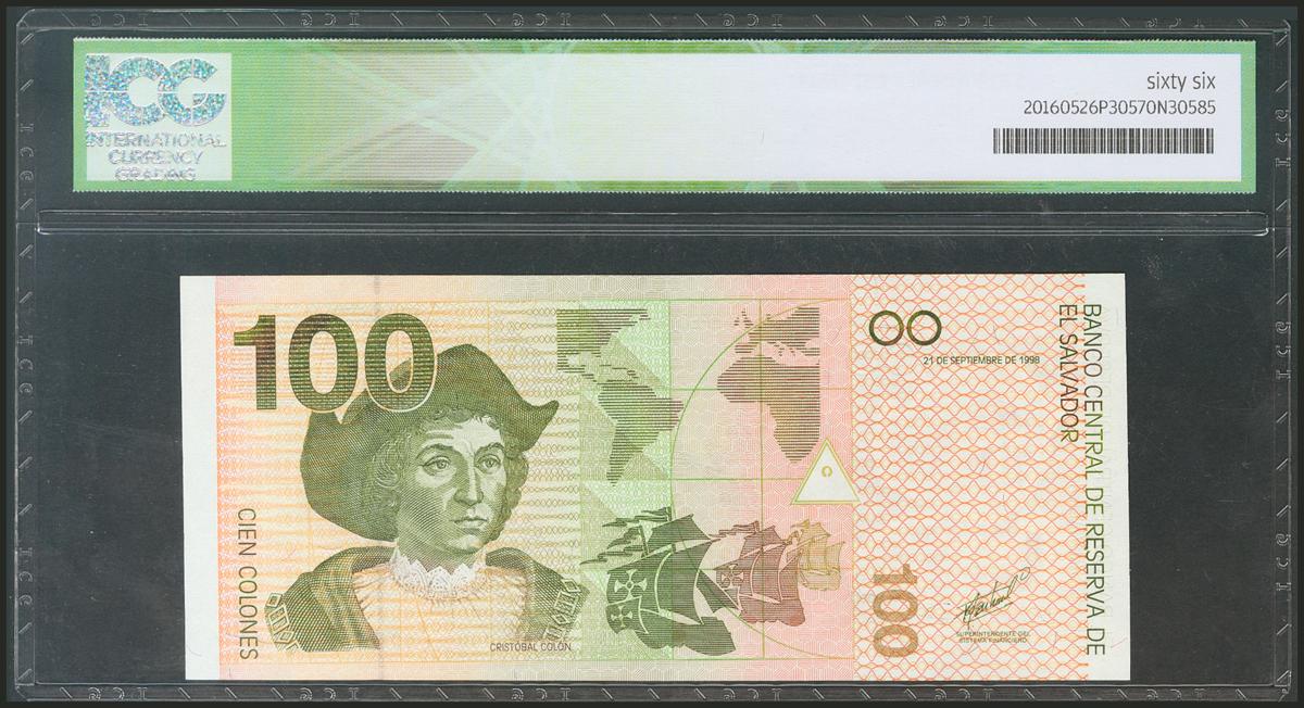 EL SALVADOR. 100 Colones. 4 May 1998. (Pick: 151a). ICG66.