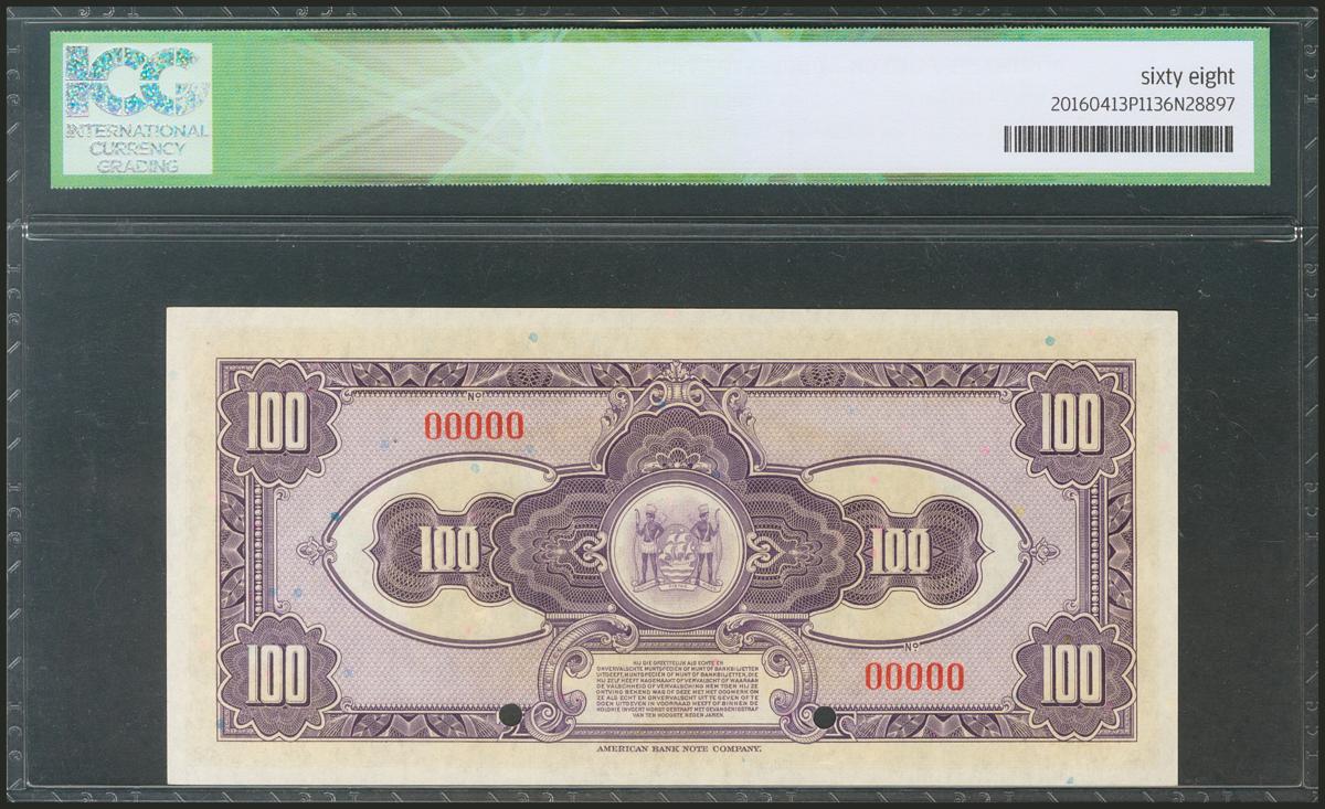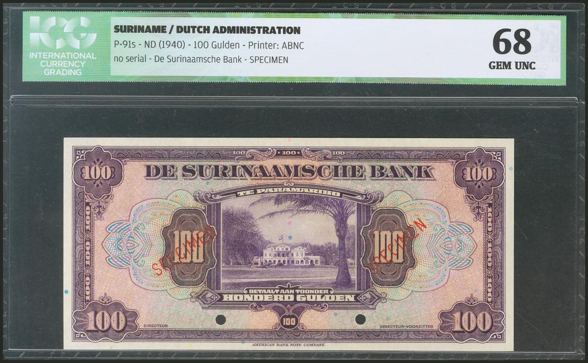 SURINAME. 100 Gulden. 1940. Specimen. (Pick: 91s). ICG68.