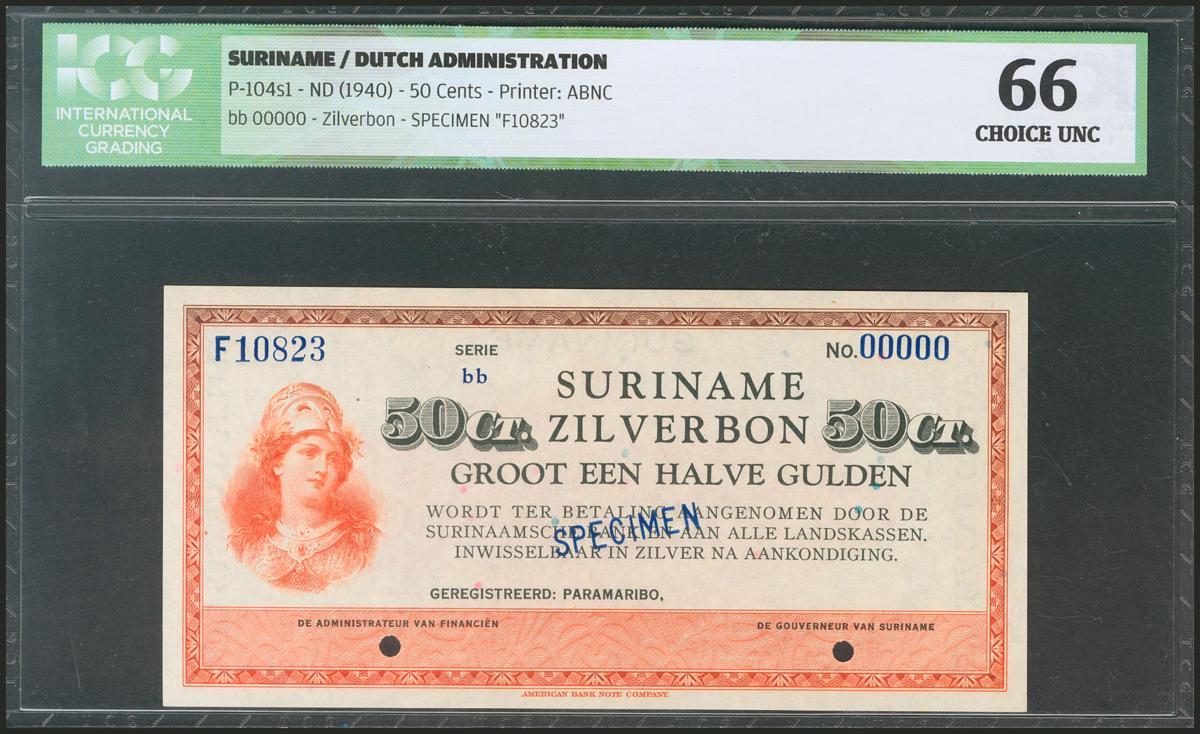 SURINAME. 50 Cents. 1940. Specimen. (Pick: 104s1). ICG66.