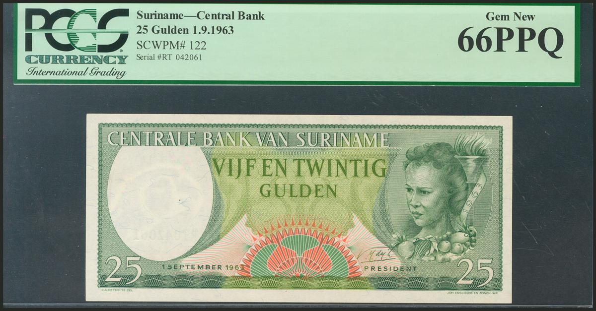 SURINAME. 25 Gulden. 1 September 1963. (Pick: 122). PCGS66PPQ.