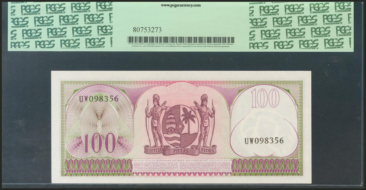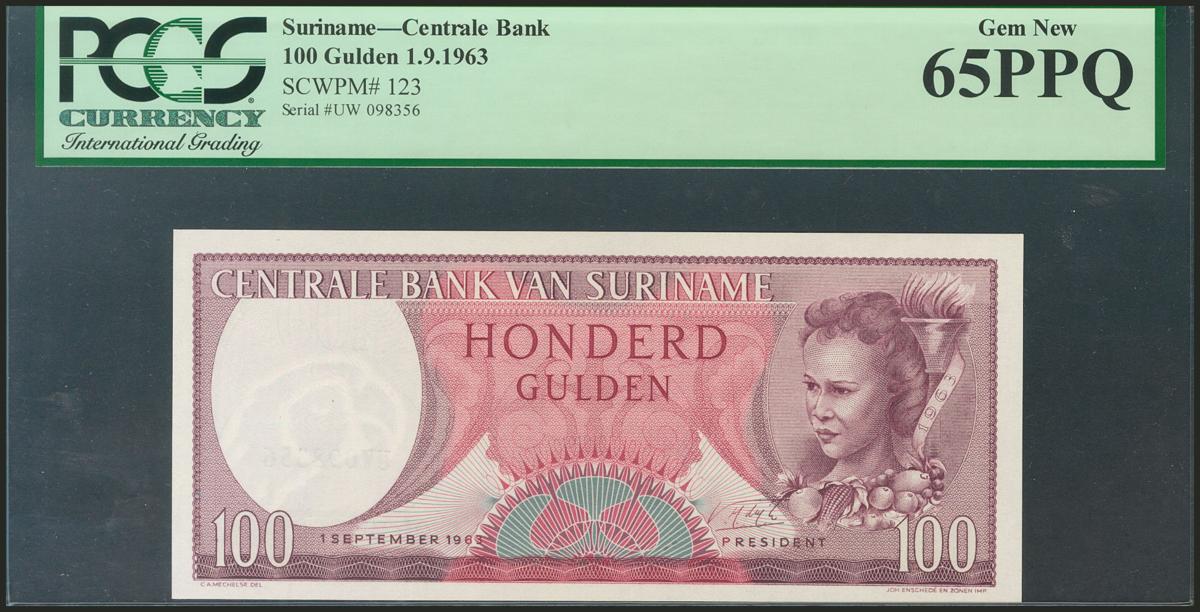 SURINAME. 100 Gulden. 1 September 1963. (Pick: 123). PCGS65PPQ.