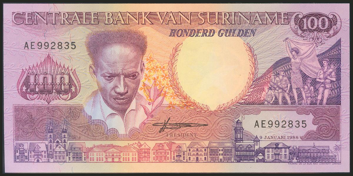 SURINAME. 100 Gulden. 9 January 1988. (Pick: 133b). Uncirculated.