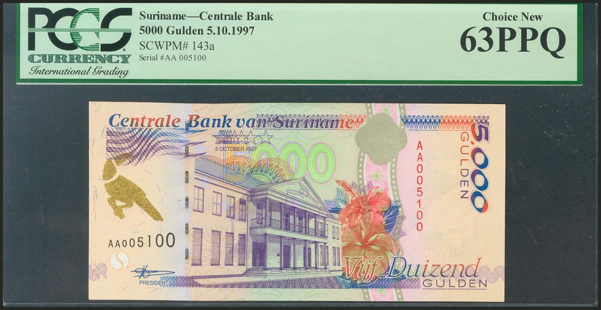 SURINAME. 5000 Gulden. 5 October 1997. (Pick: 143a). PCGS63PPQ.