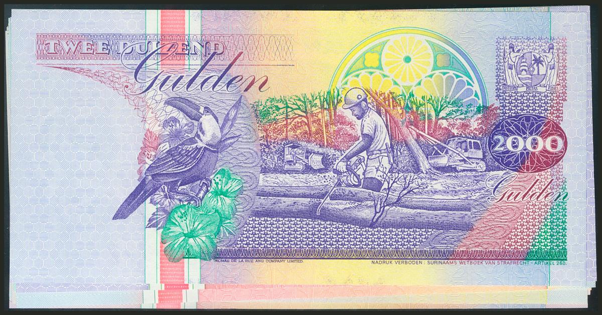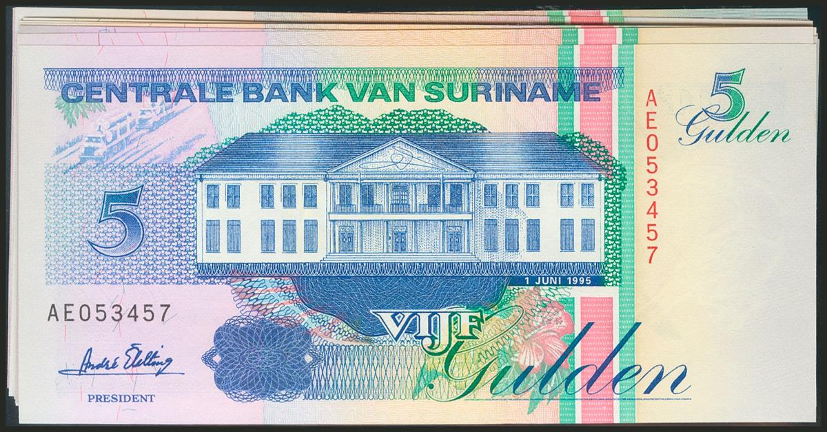 SURINAME. Set of 15 banknotes, various dates, some repeated and all uncirculated.