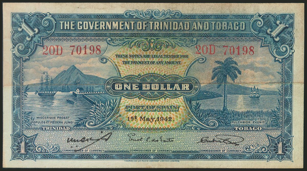 TRINIDAD AND TOBAGO. 1 Dollar. 1 May 1942. (Pick: 5c). Fine.