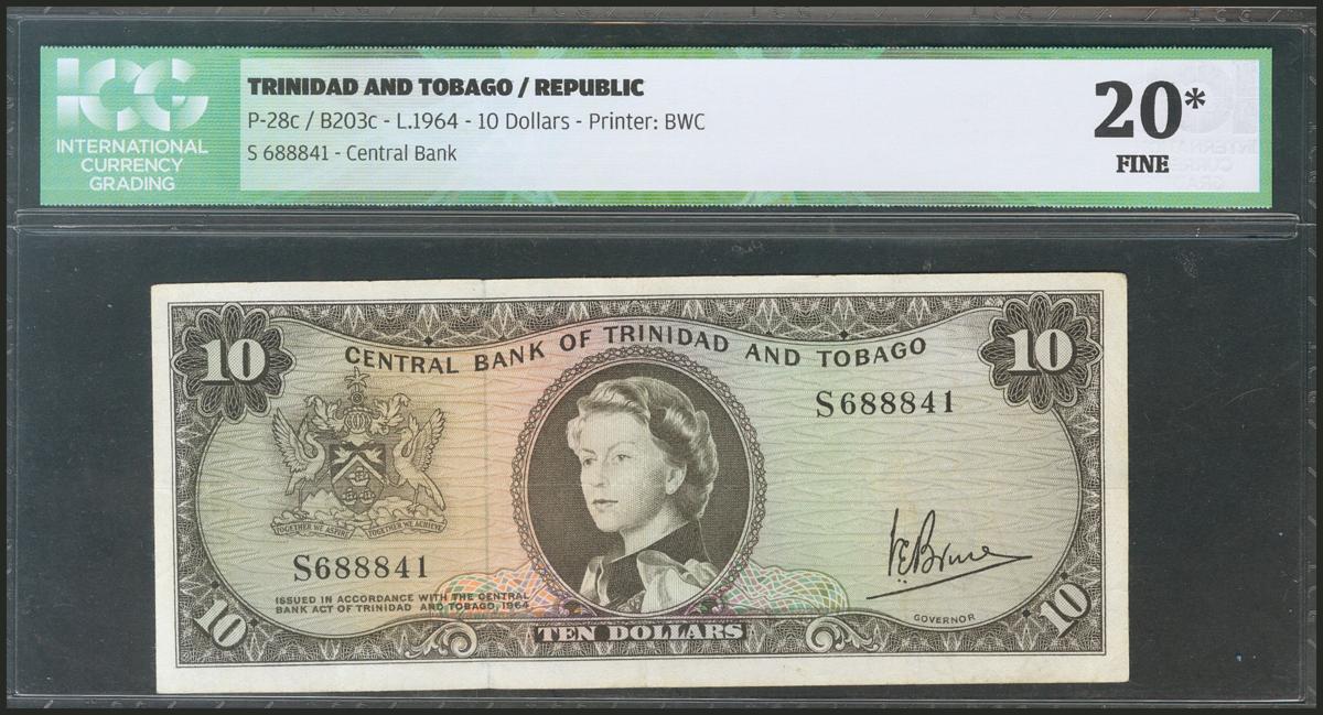 TRINIDAD AND TOBAGO. 10 Dollars. 1964. (Pick: 28c). ICG20* (washed).