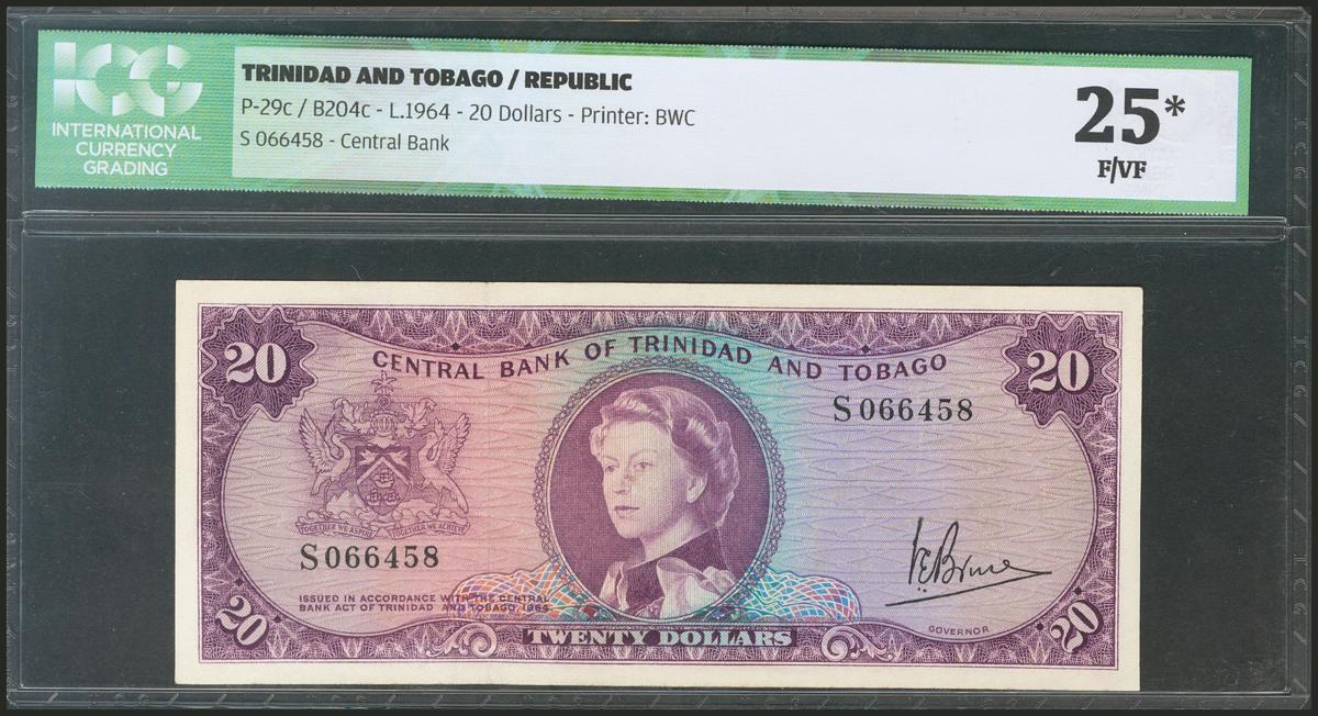 TRINIDAD AND TOBAGO. 20 Dollars. 1964. (Pick: 29c). ICG25* (washed).