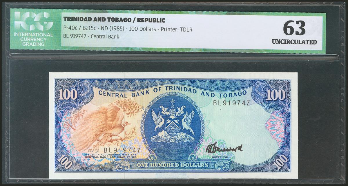 TRINIDAD AND TOBAGO. 100 Dollars. 1985. (Pick: 40c). ICG63.