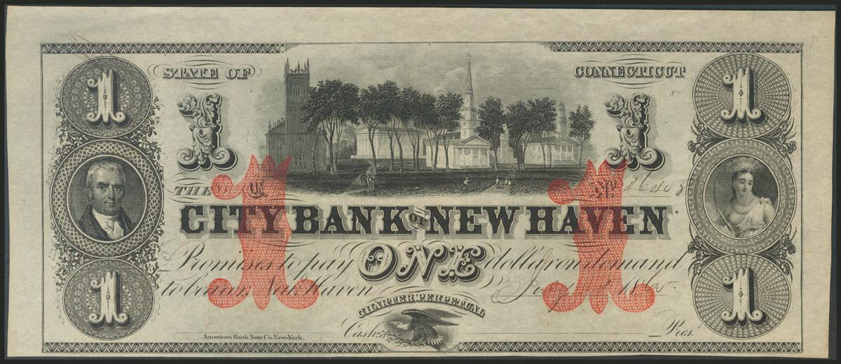 USA. 1 Dollar. Connecticut. City Bank of New Haven. 1865, July 1. (Haxby: CT-265/G12b). About uncirculated.