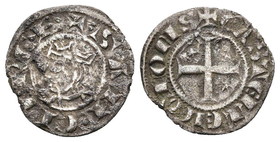 SANCHO IV. Meaja coronada. (1284-1295). Marca estrella de cinco puntas en primer cuartel y seis puntas en cuarto cuartel. AB 316 var; Mozo S4:6.1. Ve. 0,50g. MBC-.