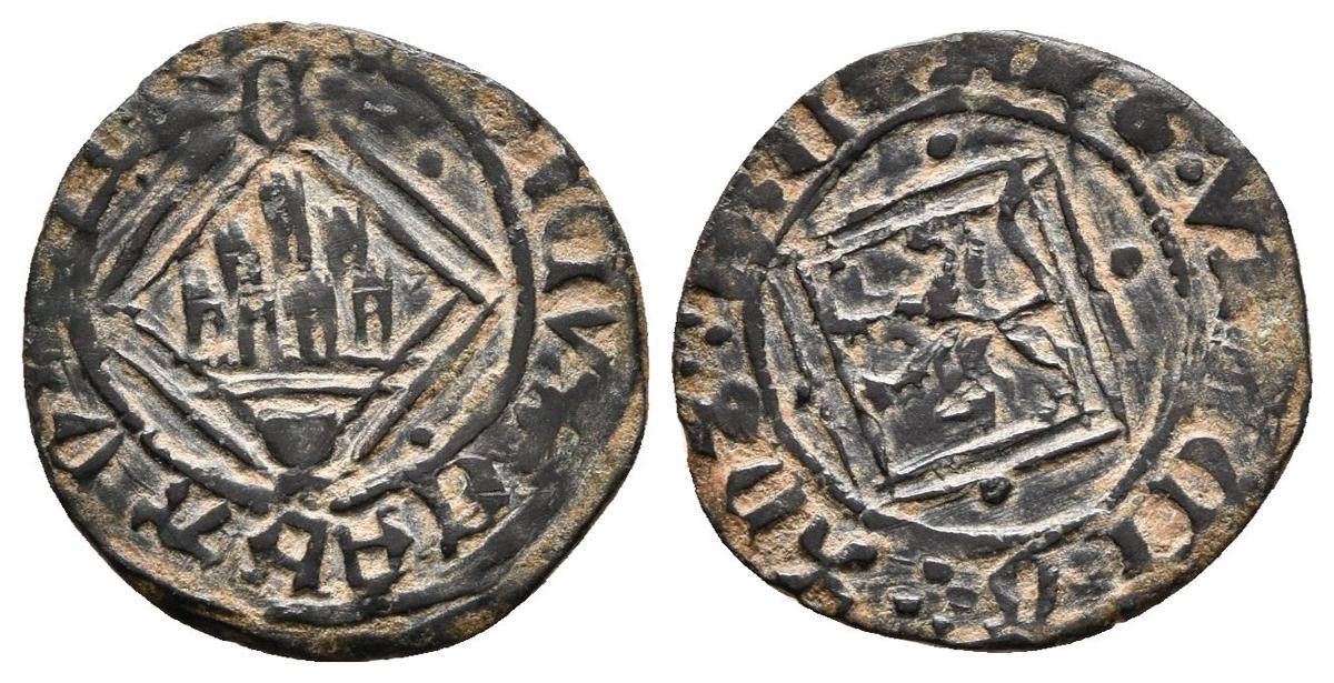 ENRIQUE IV. Blanca de rombo. (1454-1474). Cuenca, cuenco bajo el castillo y C arriba, alrededor cuatro puntos. AB 831.2. Ve. 1,31g. MBC+.