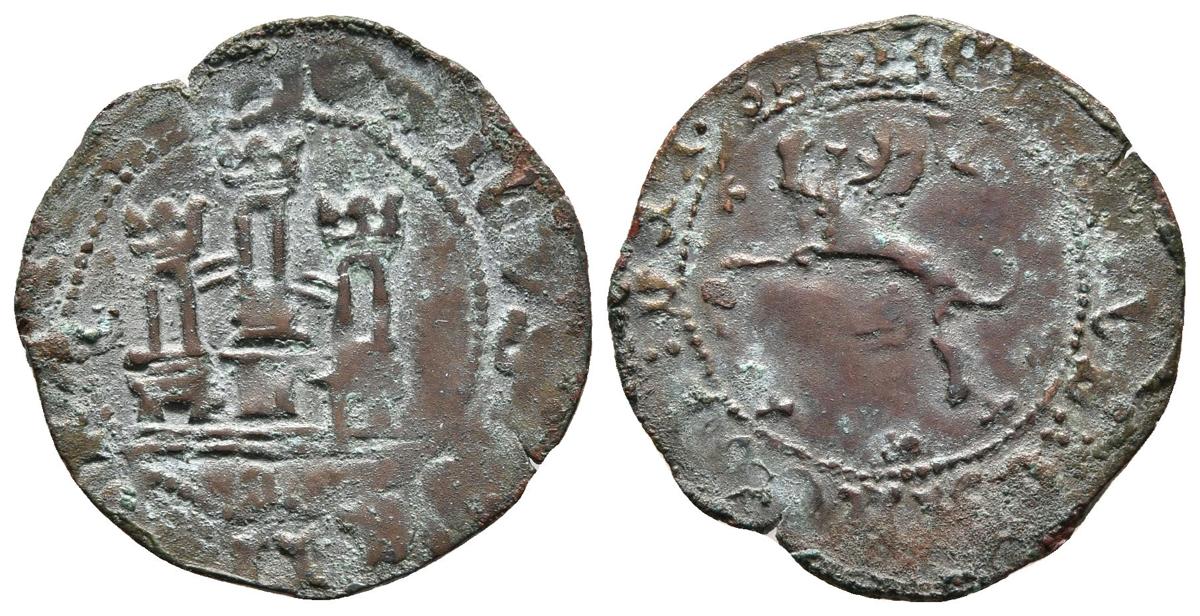 ENRIQUE IV. 1 Maravedí. (1454-1474). Murcia. Orla de seis cruces alrededor del león. AB 800.1. Ve. 2,16g. MBC-. Escasa.