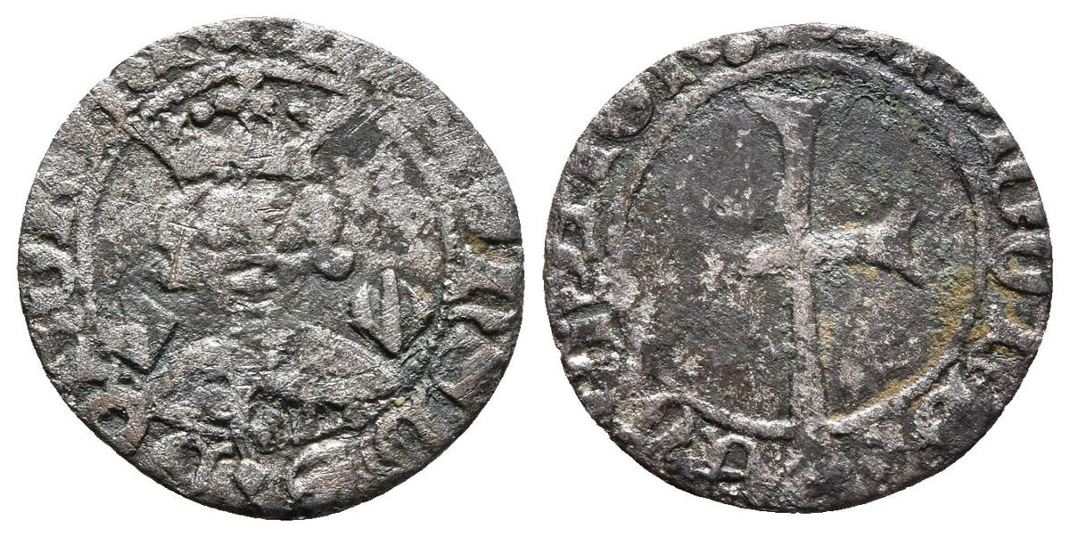 ALFONSO IV. Dobler. (1416-1458). Mallorca. Escudetes Catalanes a ambos lados del busto. Cru 856. Ve. 0,96g. MBC-.