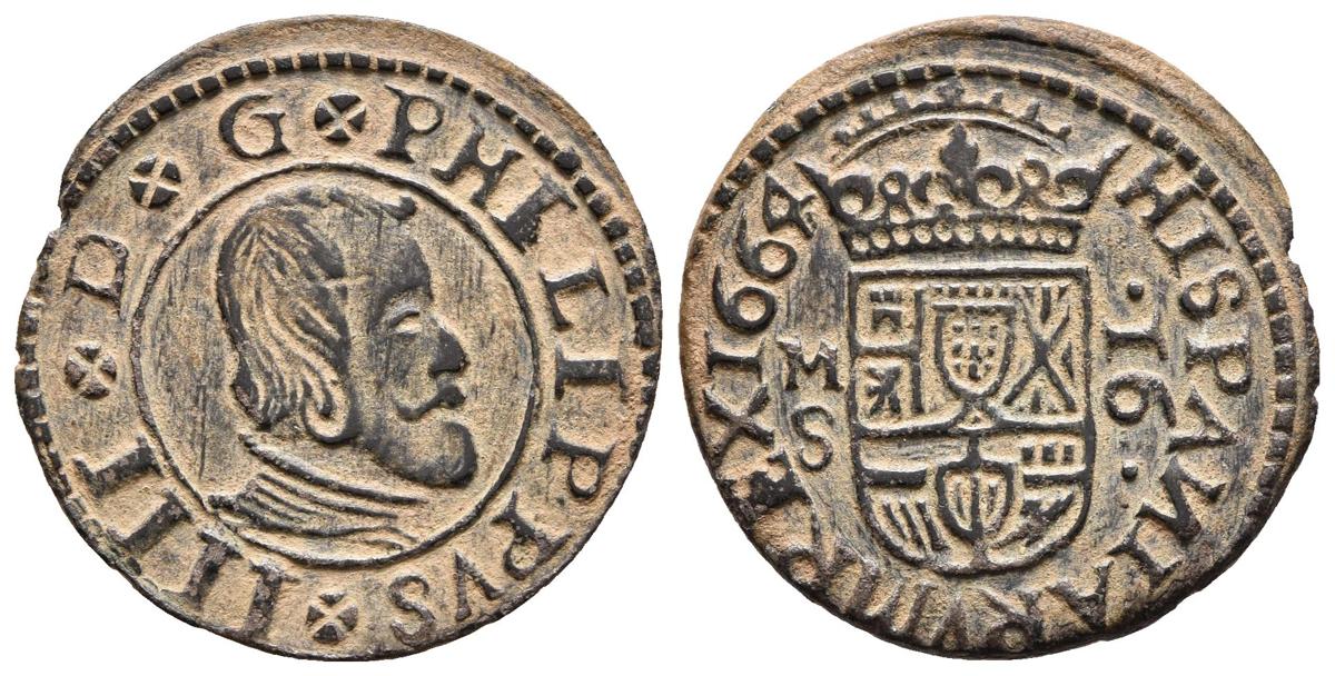 FELIPE IV. 16 Maravedís. 1663. Madrid S. La N de HISPANIARVM al revés. Cal-1406; J.S. M 414. Ae. 4,05g. EBC.