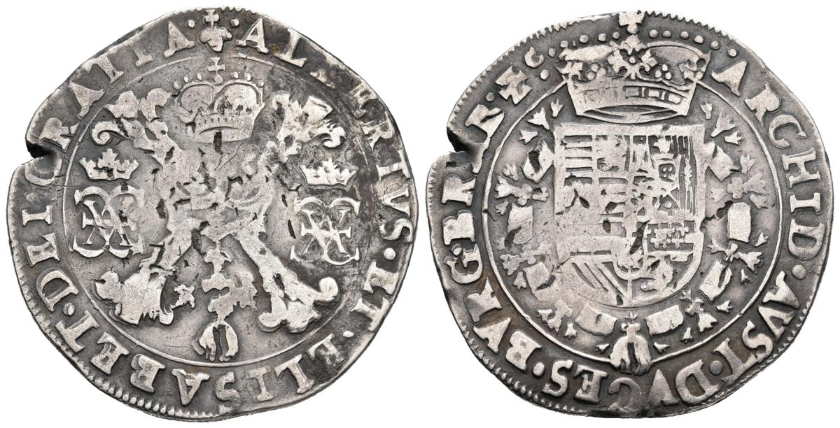 ALBERTO E ISABEL. 1 Patagón. S/D. Bruselas. Vti. 355; Vanhoudt 618.BS. Ar. 27,37g. MBC.
