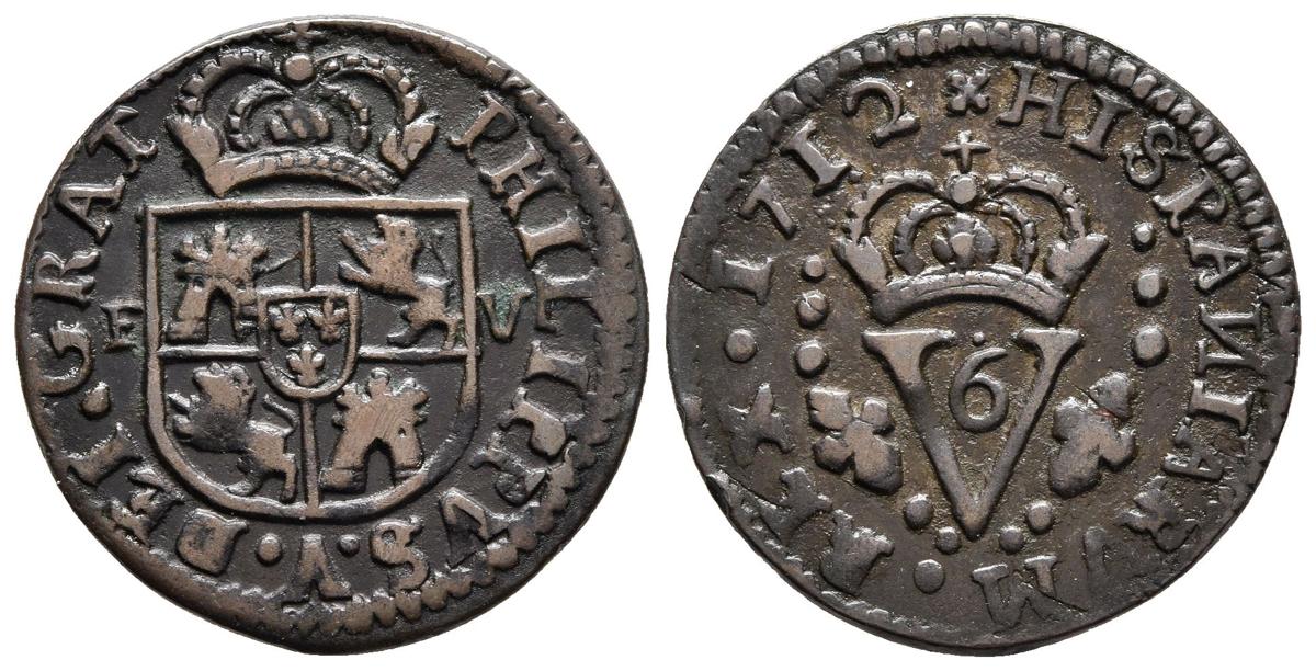 FELIPE V. 1 Sisé. 1712. Valencia. Cal-2009; Cru.C.G. 6007d. Ae. 5,75g. MBC+.