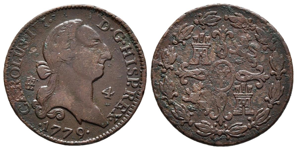 CARLOS III. 4 Maravedís. 1779. Segovia. Cal-1905. Ae. 5,32g. MBC-/BC+.