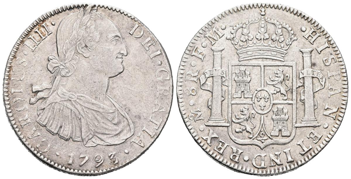 CARLOS IV. 8 Reales. 1793. México FM. Cal-686. Ar. 26,89g. MBC/MBC+.