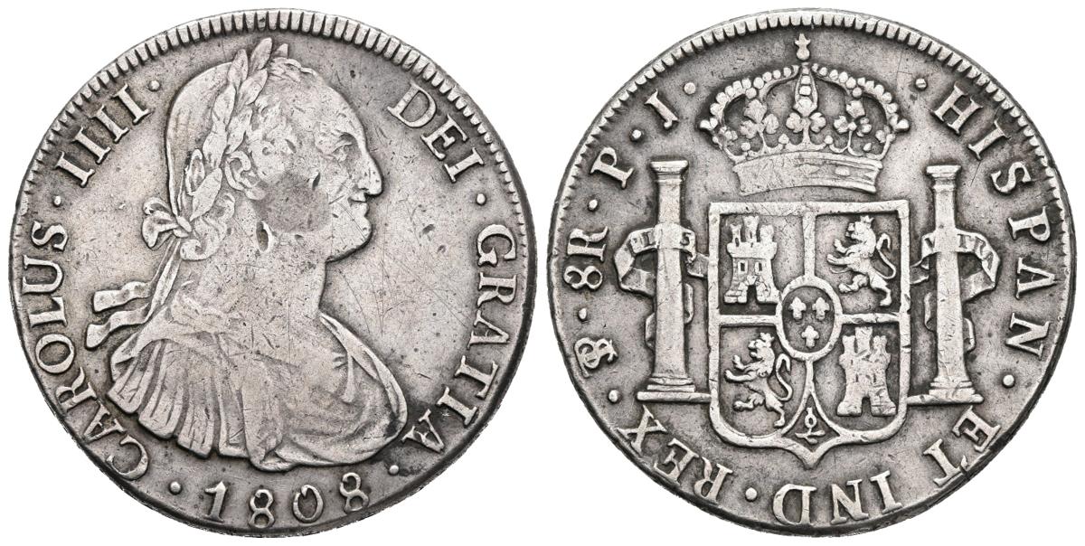 CARLOS IV. 8 Reales. 1808. Potosí PJ. Cal-732. Ar. 26,87g. MBC.