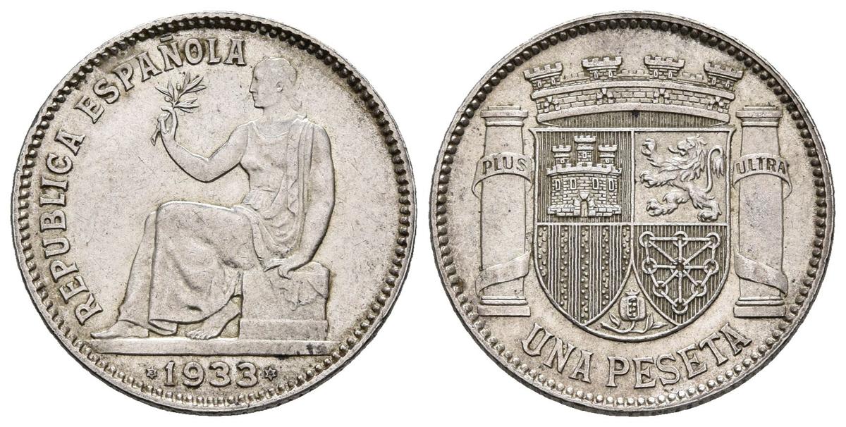 II REPUBLICA. 1 Peseta. 1933 *3-4. Madrid. Cal-1. Ar. 5,00g. EBC-.
